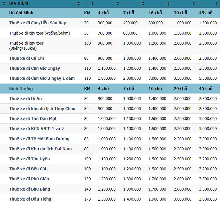 Giá thuê xe Kia 45 chỗ phụ thuộc vào nhiều yếu tố như:
