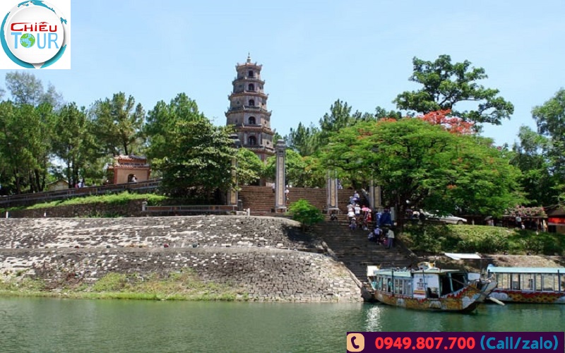 Đến thành phố Huế, quý khách dừng chân viếng Chùa Thiên Mụ: tọa lạc gần với sông Hương, ngay trên đồi Hà Khê. Đến Huế mà không ghé qua Chùa Thiên Mụ là một thiếu sót rất lớn. Địa danh này đã quá quen thuộc vì thường xuyên xuất hiện trong nhiều bài thơ, nhiều khúc hát.
