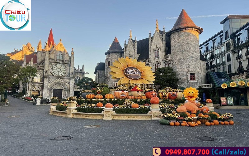 Ngồi cáp treo dài nhất thế giới (gần 6.000m) lên đỉnh Bà Nà, tham quan chùa Linh Ứng, Thích Ca Phật Đài, Vườn hoa Tình Yêu “Le Jardin d’amour”, Cây Cầu Vàng... nổi tiếng thế giới.